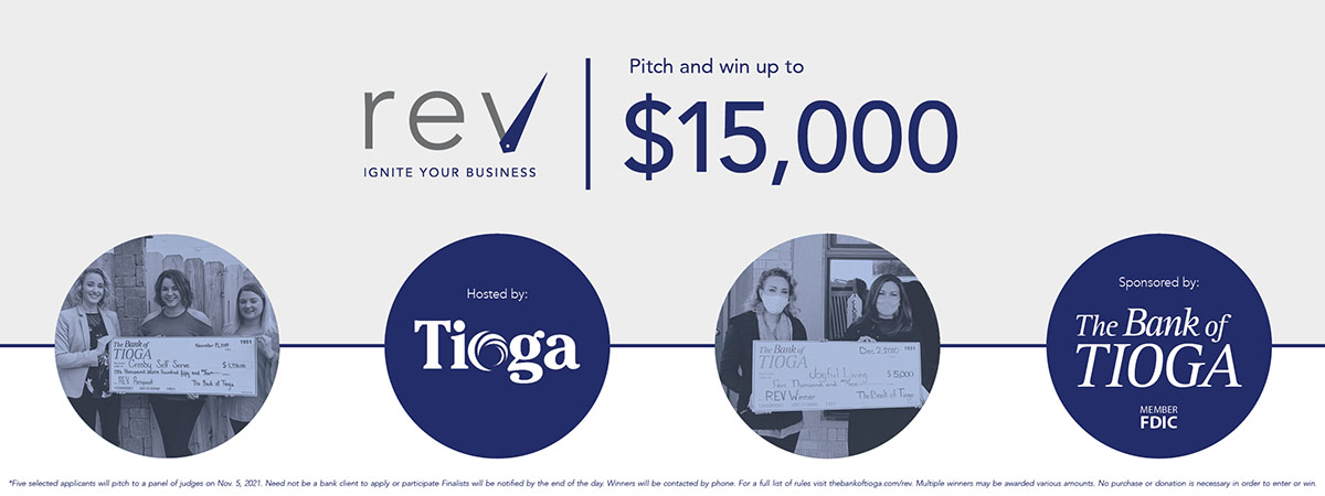 The Bank of Tioga started REV five years ago in an effort to spur economic growth and encourage business owners to continue pursuing their dreams. To date, the bank has awarded $45,000 to multiple winners.